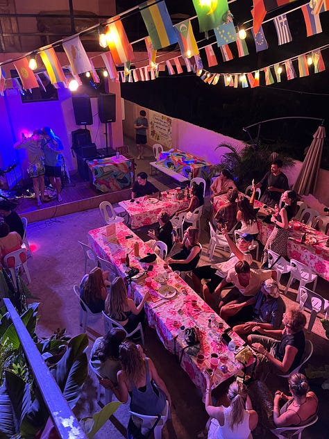 At this point, I am a newbie at backpacking and have not hit my stride. I had mild regrets and lessons across the board (say yes to going out even if you’re tired, do not stay in the party hostel, you should have done the zip line), and I was beginning to overly rely on the marketing of this Healing Island. I had assumed something quiet and frankly, a little bit lonely, in the name of reflection - my previous solo trips had been like that. I was constantly surprised by friendly invitations, even though I had been on the receiving end of them in Vietnam, Cambodia, and Thailand.